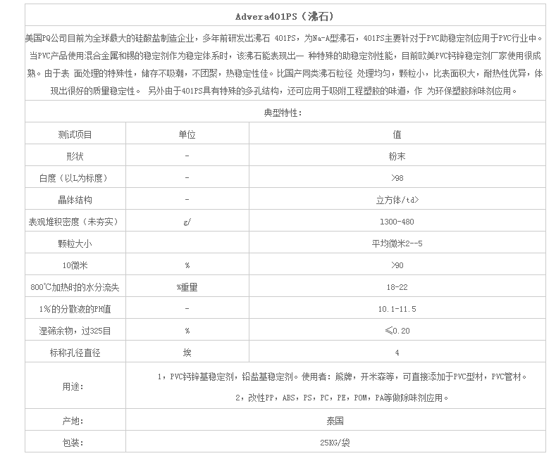 天津开发区国隆化工 橡塑添加剂 Advera 401PS(沸石)