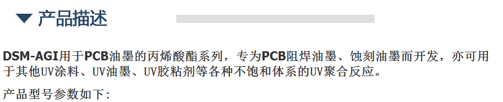 帝斯曼UV树脂 光固化低聚物 PCB油墨专用树脂