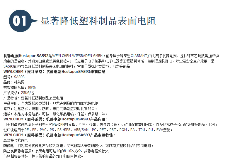WEYLCHEM(原科莱恩)抗静电剂HostapurSAS93