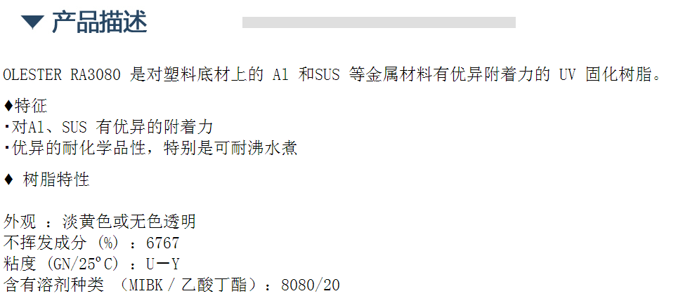 日本三井光固化树脂 OLESTER RA3080