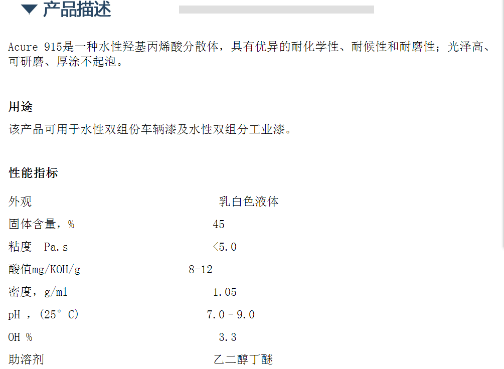 科思创水性羟基丙烯酸分散体ACURE 915