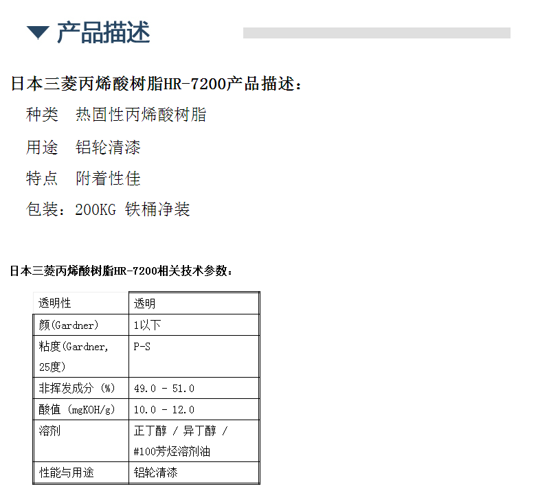 日本三菱热固性丙烯酸树脂HR7200