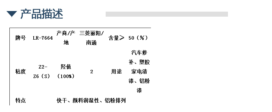 三菱丽阳多羟基丙烯酸树脂LR-7664(适合银粉漆)