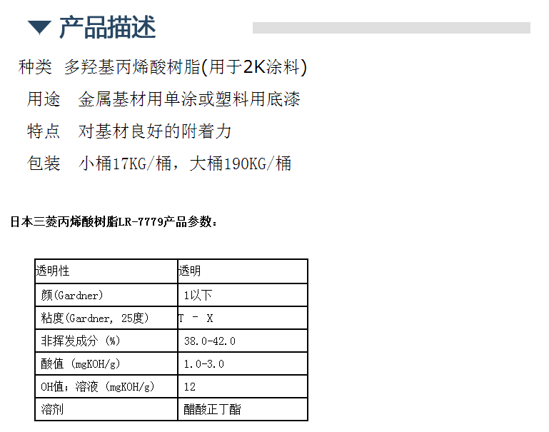三菱丽阳多羟基丙烯酸树脂LR-7779
