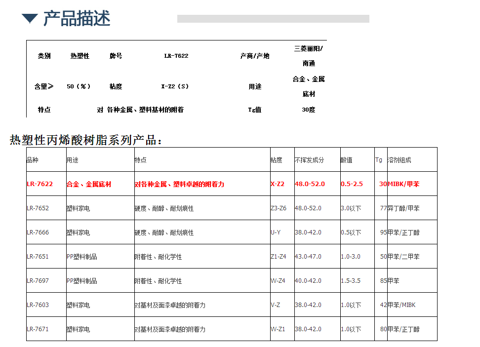 三菱丽阳热塑性丙烯酸树脂LR-7622