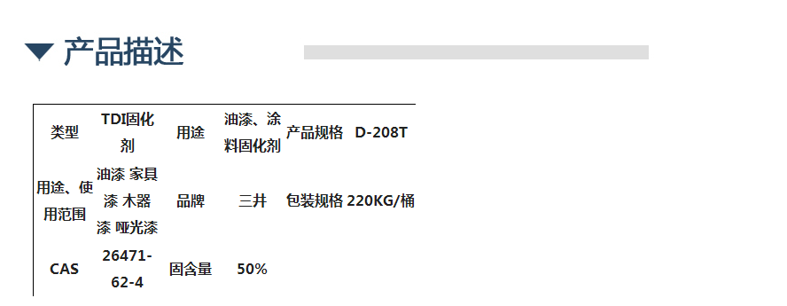 三井固化剂D-208T|三聚体|高粘|低温快干型