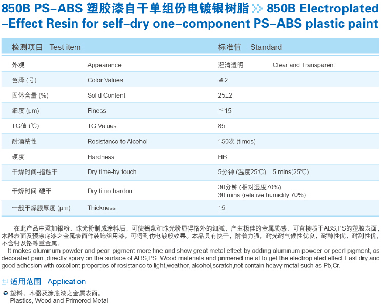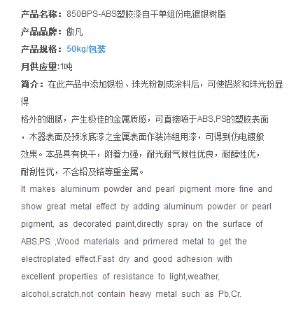 上海傲凡 850BPS-ABS塑胶漆自干单组份电镀银树脂