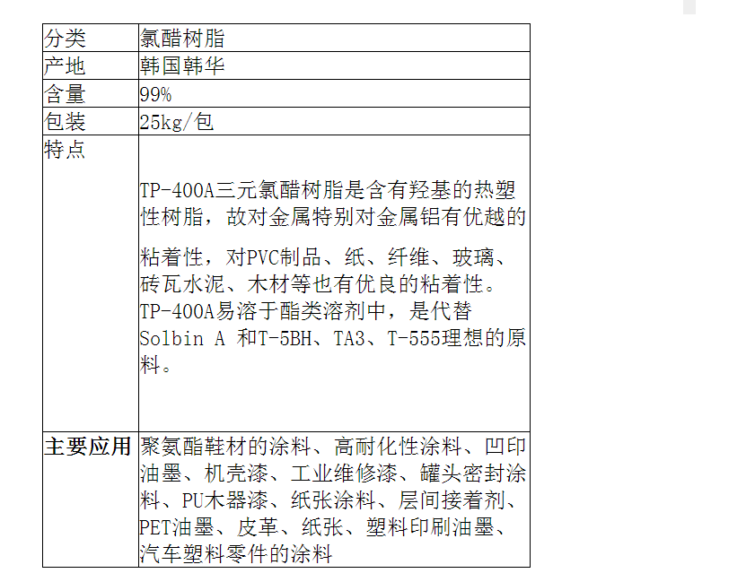 韩华羟基改性三元氯醋树脂TP-400A