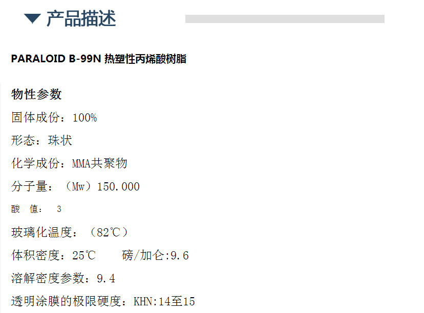 罗门哈斯丙烯酸树脂PARALOID B-99N 高光泽,颜料分散型