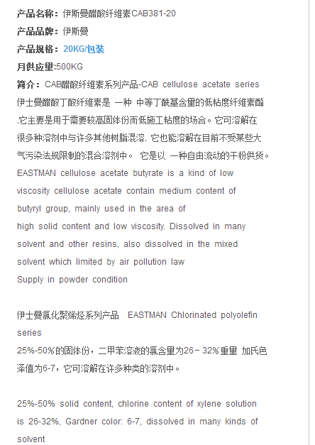 伊斯曼醋酸纤维素CAB381-20
