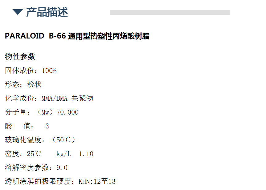 罗门哈斯丙烯酸树脂PARALOID B-66 高透明度
