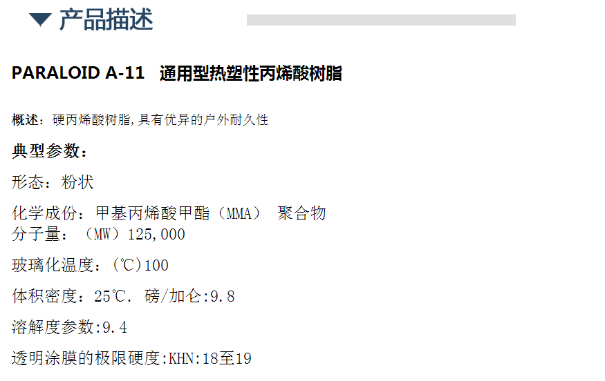 罗门哈斯丙烯酸树脂PARALOID A-11 优异的户外耐久性