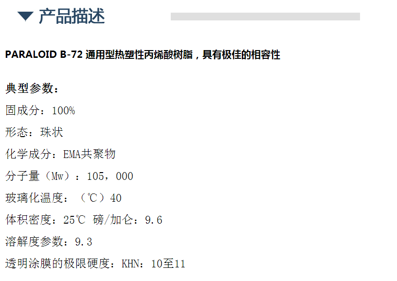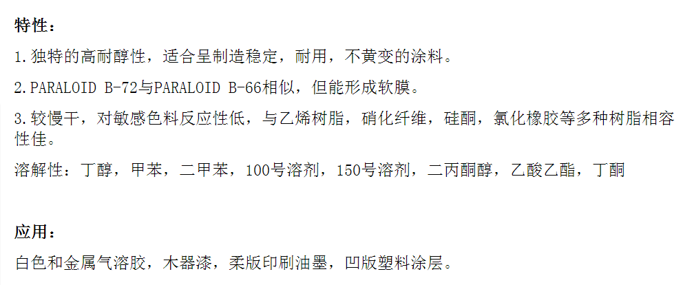 罗门哈斯丙烯酸树脂PARALOID B-72 独特的高耐醇性 适合于制造稳定耐用不黄变的涂料