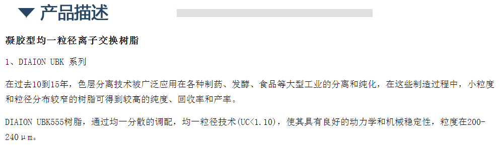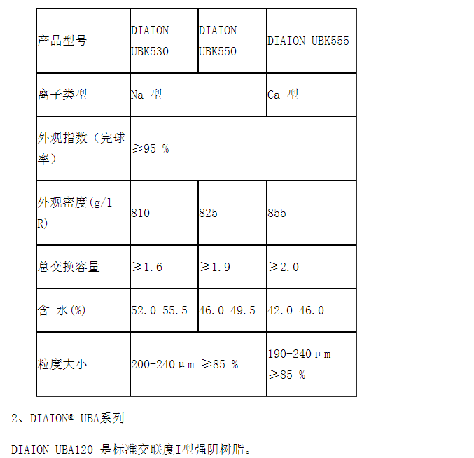 三菱化学凝胶型均一粒径离子交换树脂DIAION UBK530
