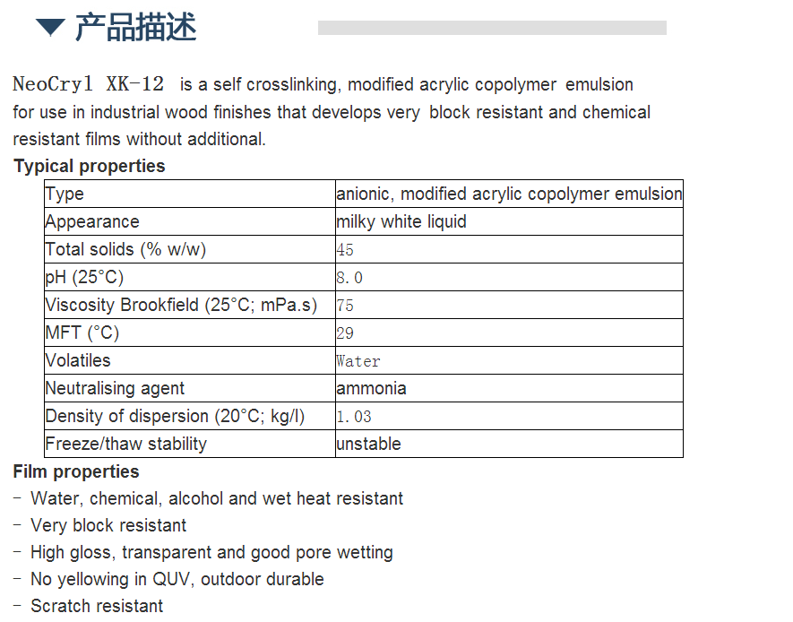 DSM帝斯曼水性丙烯酸NeoCryl XK-12
