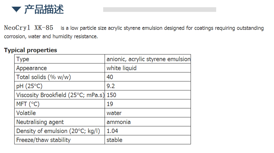 DSM帝斯曼水性丙烯酸NeoCryl XK-85