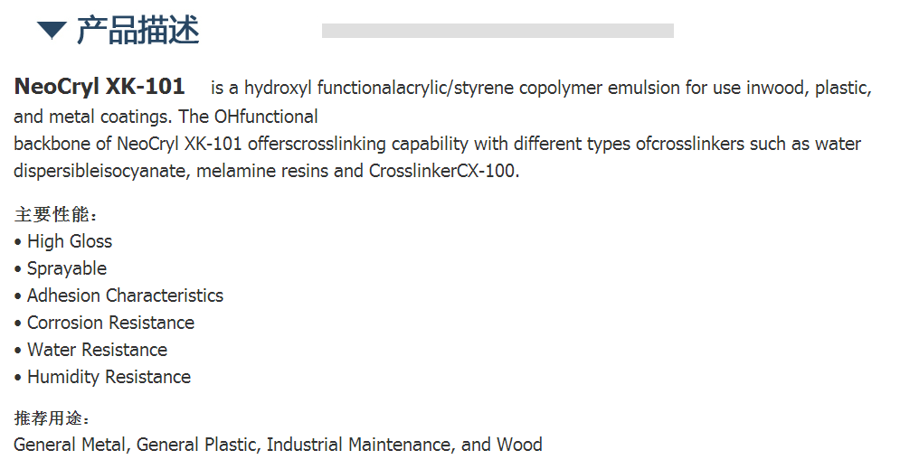 DSM帝斯曼水性丙烯酸NeoCryl XK-101