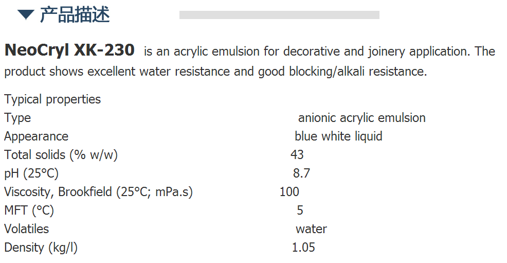 DSM帝斯曼水性丙烯酸NeoCryl XK-230
