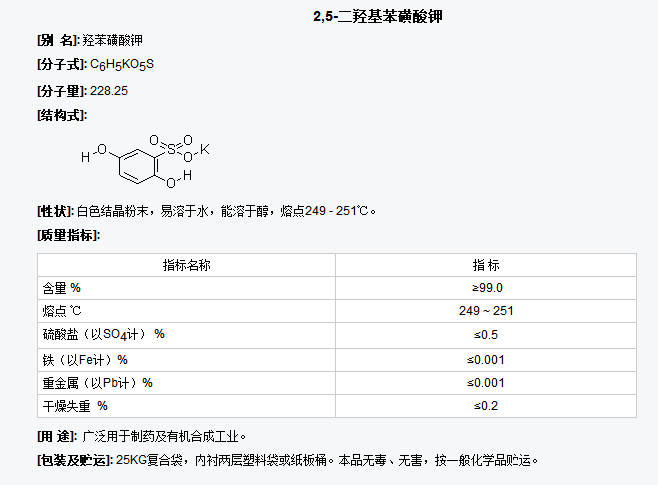 南通环宇 医药中间体 2,5-二羟基苯磺酸钾