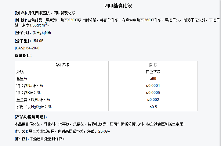 南通环宇 医药中间体 四甲基溴化铵