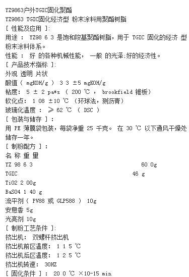 扬州百思德 YZ9863 TGIC固化经济型 粉末涂料用聚酯树脂