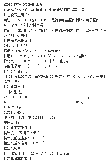 扬州百思德 YZ9833( 9803N) TGIC固化 户外 粉末涂料用聚酯树脂