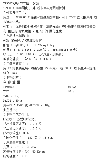 扬州百思德 YZ9803K TGIC固化 户外 粉末涂料用聚酯树脂