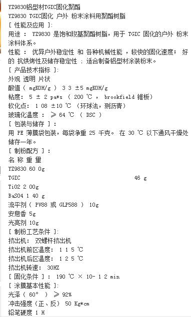 扬州百思德 YZ9830铝型材TGIC固化聚酯