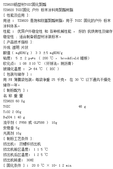 扬州百思德 YZ9820铝型材TGIC固化聚酯树脂