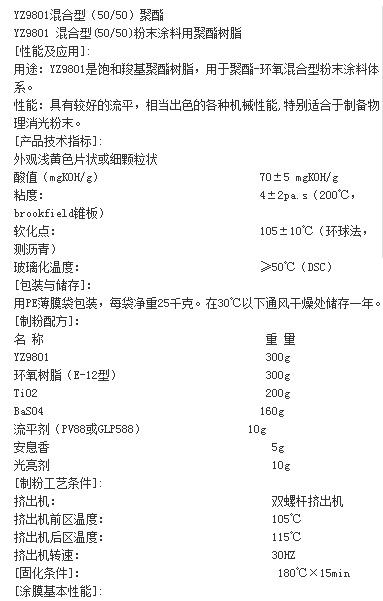 扬州百思德 YZ9801 混合型(50/50)粉末涂料用聚酯树脂