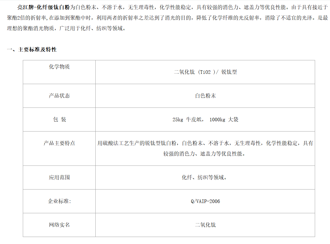 上海亮江 化纤级钛白粉