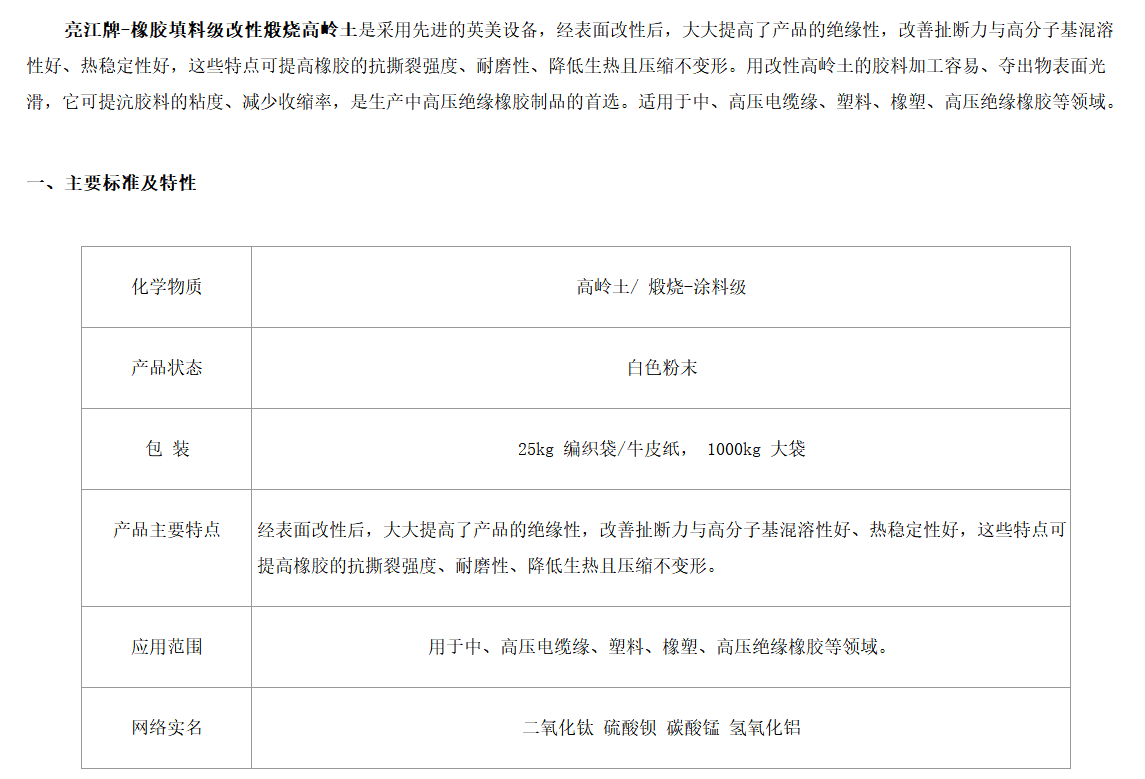 上海亮江 改性煅烧高岭土