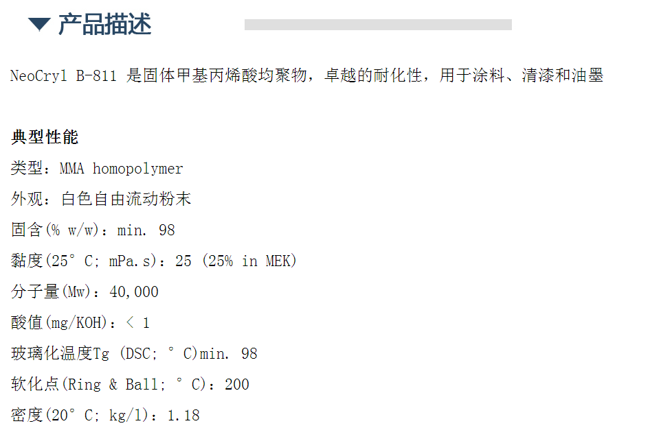 帝斯曼利康固体丙烯酸树脂Neocryl B-811
