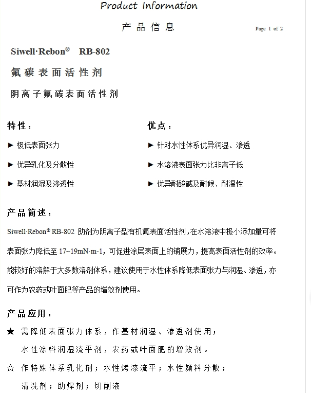广东雷邦 氟碳表面活性剂 RB-802