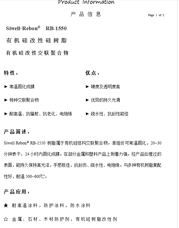 广东雷邦 有机硅树脂RB-1550