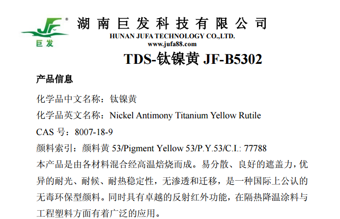 湖南巨发,涂料用环保无机颜料, 钛镍黄(P.Y.53), 镍锑钛黄,钛镍黄,钛铬黄,绿光钛黄 ,53号黄,PY53