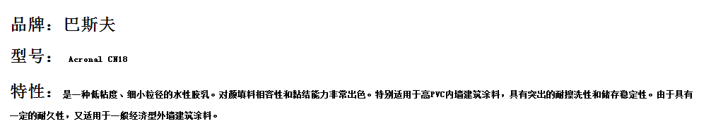 巴斯夫建筑涂料用苯丙乳液Acronal CN18