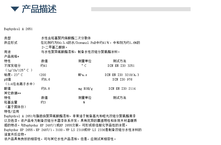 科思创拜耳水性聚氨酯Bayhydrol A 2651