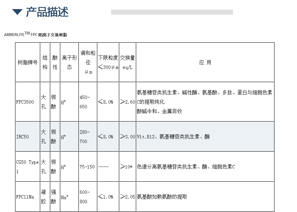 AMBERLITE FPC 阳离子交换树脂