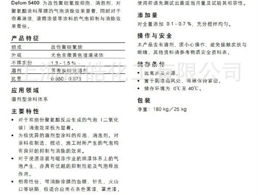 上海浦皓化工 德谦消泡剂5400