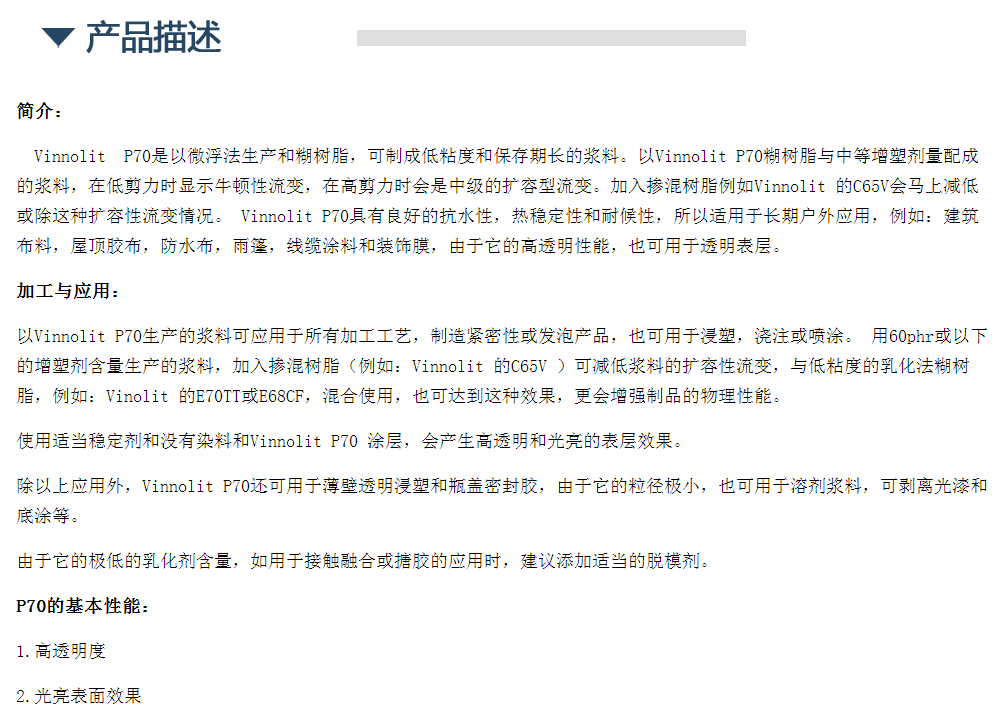 德国Vinnolit PVC糊P70,用于薄壁透明浸塑和瓶盖密封胶 可剥离光漆和底涂
