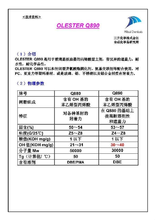 日本三井丙烯酸多元醇树脂 OLESTER Q890