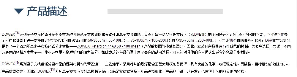 美国陶氏Dowex离子交换色谱分离树脂