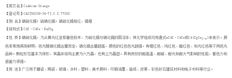 湖南诺立 耐高温无机颜料 镉橙 硒硫化镉,硫硒化镉,硒硫化镉桔红,镉橙
