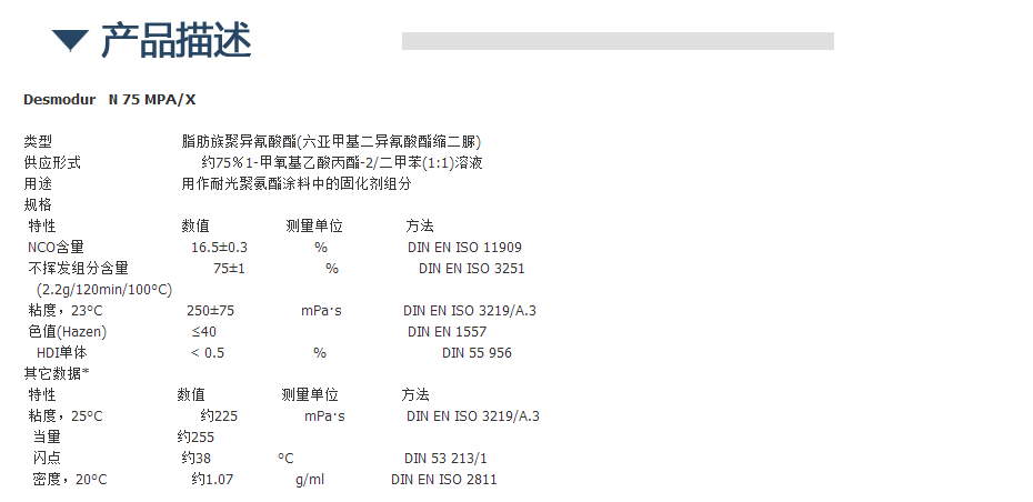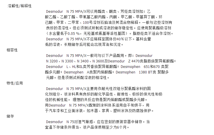 拜耳固化剂Desmodur N 75 MPA/X