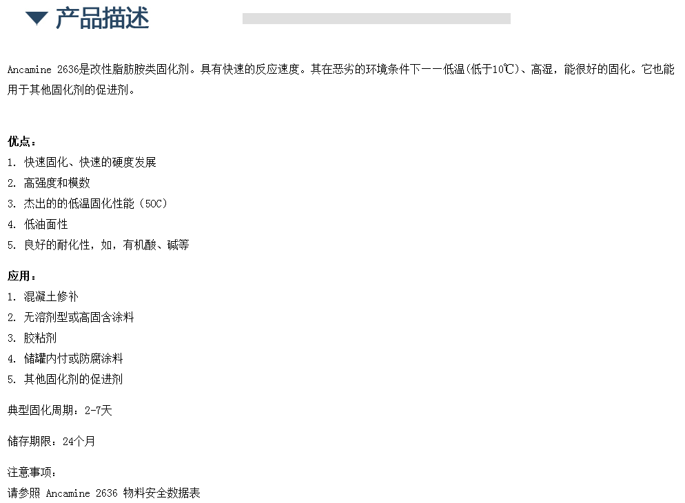 空气化学环氧固化剂 Ancamine 2636 低温快速固化