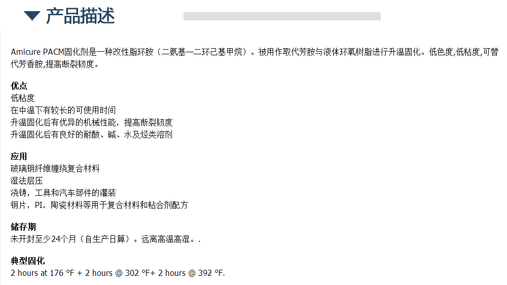 空气化学环氧固化剂 Amicure PACM
