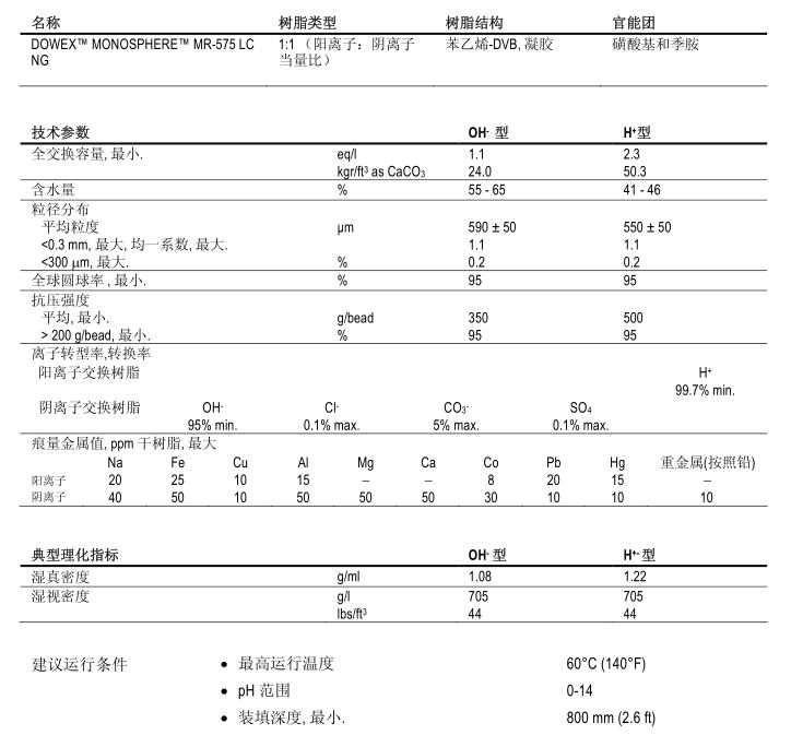 美国陶氏离子交换树脂 MONOSPHERE MR-575LC NG