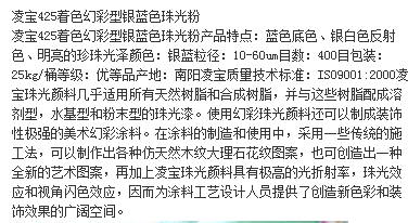 南阳凌宝 珠光颜料 珠光粉 凌宝425着色幻彩型银蓝色珠光粉