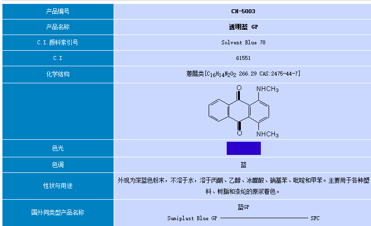 东莞市彩之虹 染料 透明蓝GP